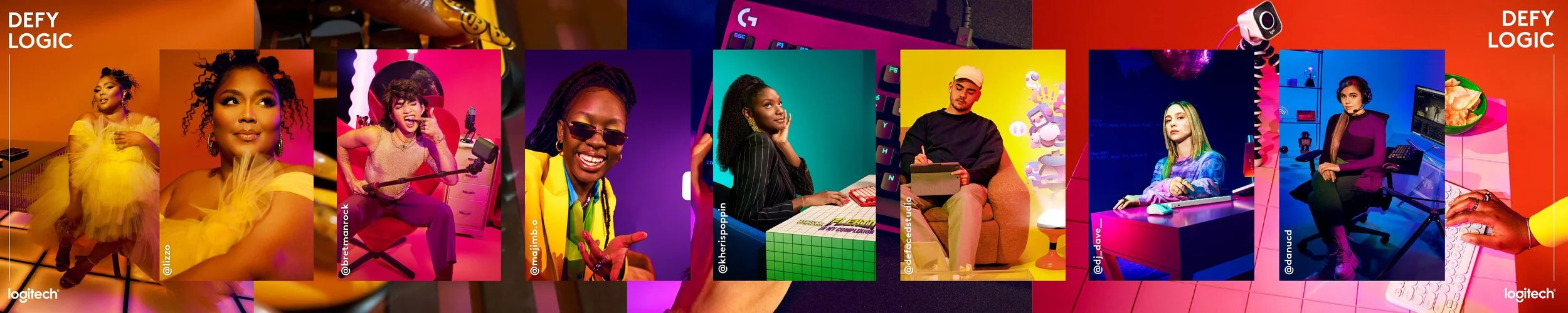 We placed the spotlight on seven “Logicians” from different backgrounds who each personify Defy Logic. These protagonists each use Logitech tools and technology in their own ventures and to connect with their rising communities. Representing the next generation pushing culture forward, our 2022 protagonists included Lizzo, Bretman Rock, DanucD, DJ Dave, Defaced, Elsa Majimbo, Kheris Rogers.